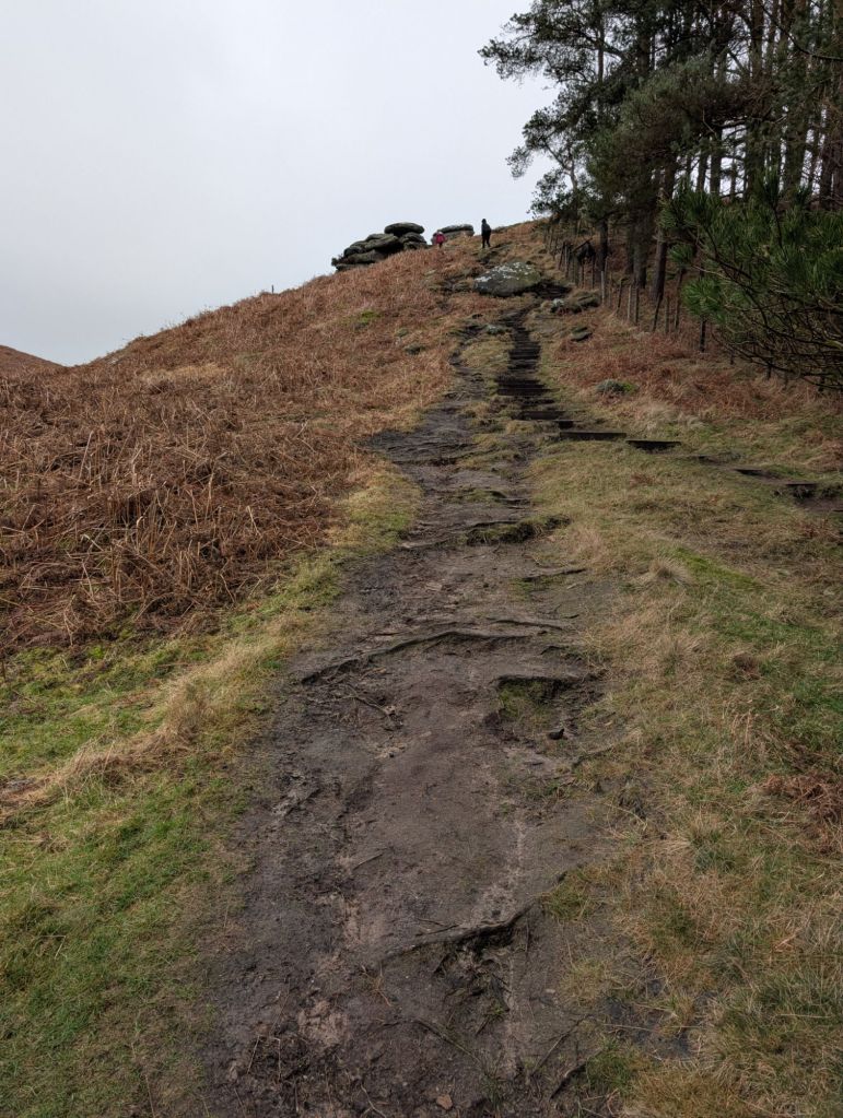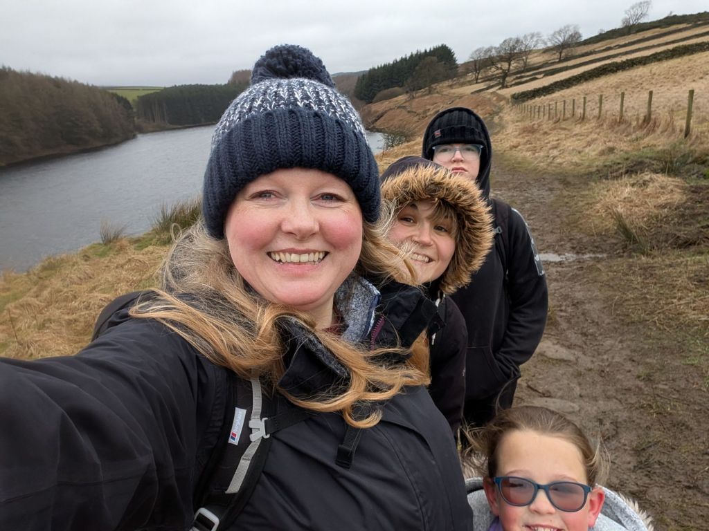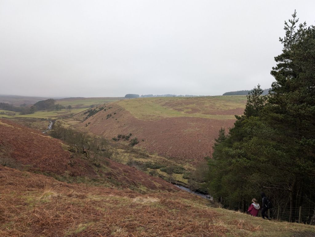 You walk down one side of the reservoir then instead of coming down the waters edge you steadily climb up to some farm land and then onto moor land. There are some awful stiles along this section of path. If you have a large dog it’s not getting over one of them and would need to be carried.
