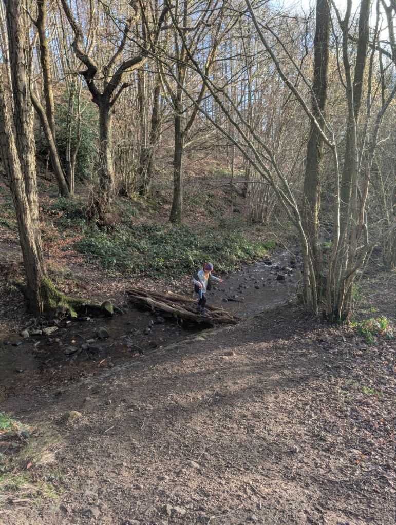 We walked back over the viaduct and then swung left and followed the river Washburn until we met a little stream. We crossed the stream and said goodbye to the river, walking up the valley through Dob park woods.