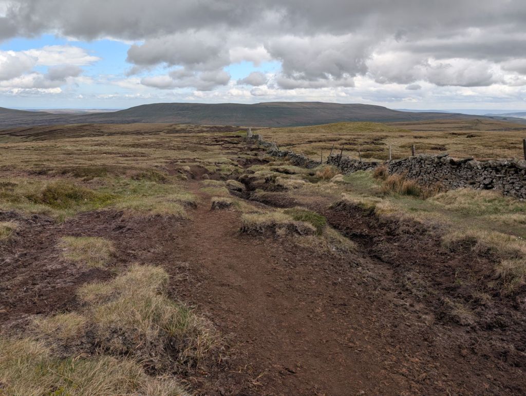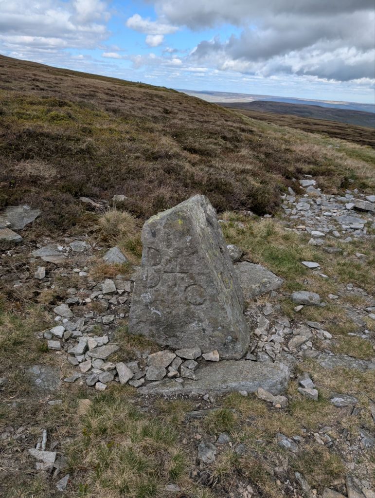 Anyway we continued on up and up until we came to a boundary stone, or that’s what I’m assuming it is. Then we had to take a left. This stretch of the walk I’m glad we were doing after a dry spell. The peat bogs must be awful when wet.