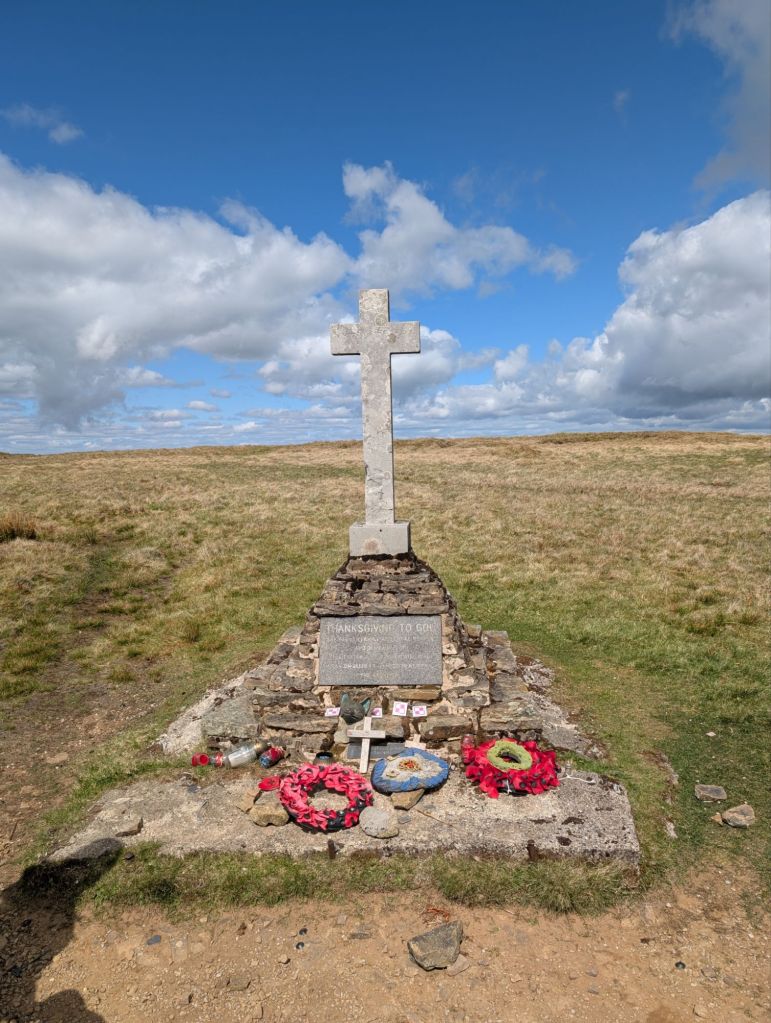 We quickly made it to the memorial cross. It was built to commemorate the Polish airmen who lost their lives there in 1942 when their plane crashed. We had quite a conversation about how scary it must have been for these pilots and how tragic it was. Looking at the memorial it has metal built into the base, I’m left wondering if this is parts of the plane.