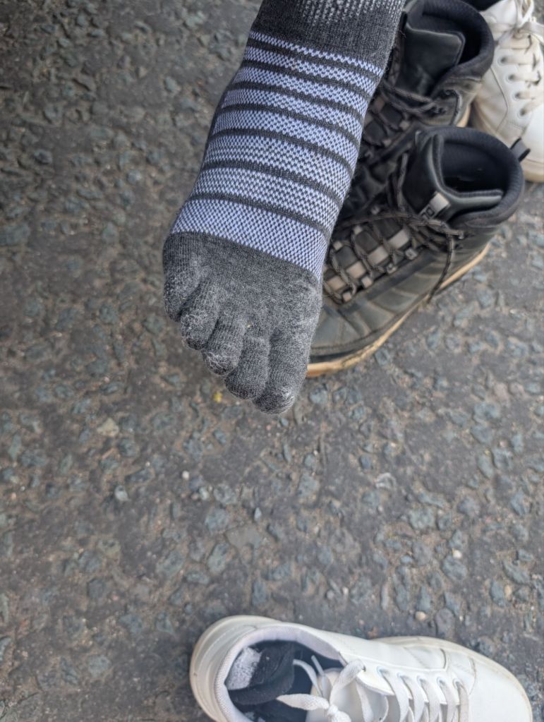 I’m happy because I managed to wear my walking boots for the whole walk, maybe finally they are starting to break in? Rachel was trying out a new freaky sock to see if it stops her toes rubbing and reported good things. Maybe our footwear issues will ease up for a little bit now?