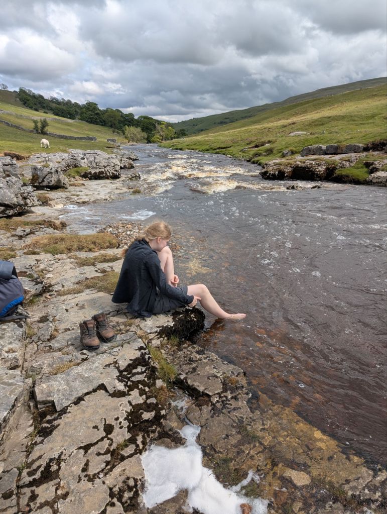 We decided to stop in Deepdale for a break and Zara wanted to play in the shrinking river Wharfe. It was a lot smaller at this point so close to its source. Interestingly despite still being the river Wharfe this bit of the river is not in Wharfedale but instead Langstrothdale.