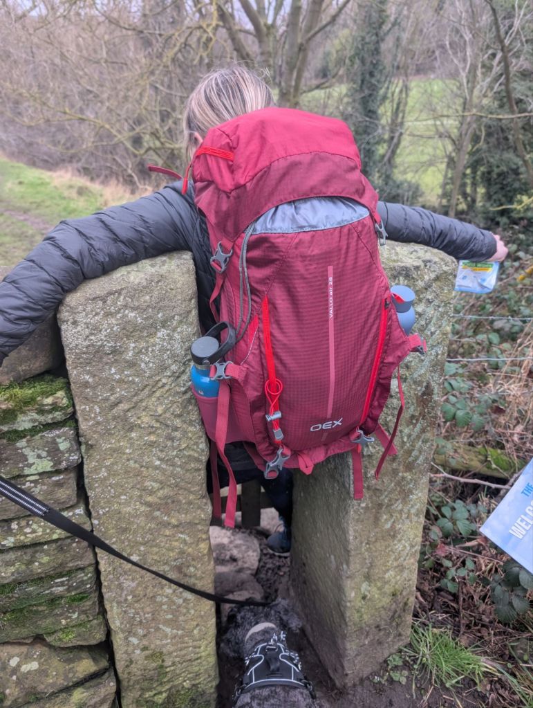 This section of the Welcome Way was nice and varied. The first third was lovely and flat. We descended down off the hill and were warned in the guide book about the tight squeeze. This one I made it through.