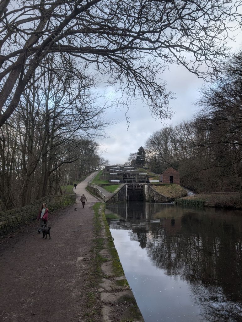 We dropped down onto the Leeds Liverpool canal and saw the Five Rise Locks. We had to explain to Rachel how the locks work, now I think she’s planning a canal holiday.