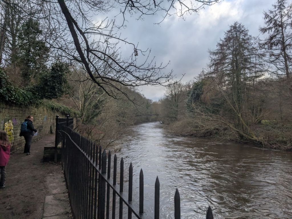 We followed the canal path for a while until we came to a big bridge and then met the River Ayre. We continued along the river Ayre for a short while before popping up into Bingley. We had a short break and a stop off at Lidl before continuing on to Myrtle Park and walking back to the river.